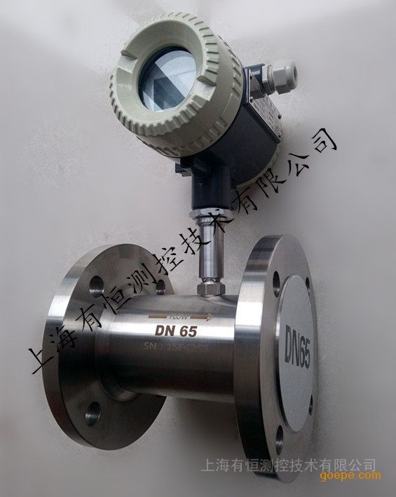 UHLWGY型自来水矿泉水纯水液体涡轮流量计是采用涡轮进行测量。它先将流速转换为涡轮的转速,再将转速转换成与流量成正比的电信号。这种流量计用于检测瞬时流量和总的积算流量,其输出信号为频率,易于数字化。图中感应线圈和永久磁铁一起固定在壳体上。当铁磁性涡轮叶片经过磁铁时,磁路的磁阻发生变化,从而产生感应信号。信号经放大器放大和整形,送到计数器或频率计,显示总的积算流量。同时将脉冲频率经过频率-电压转换以指示瞬时流量。叶轮的转速正比于流量,叶轮的转数正比于流过的总量。涡轮流量计的输出是频率调制式信号,不仅提高了检测电路的抗干扰性,而且简化了流量检测系统。它的量程比可达10:1,精度在±0.2%以内。惯性小而且尺寸小的涡轮流量计的时间常数可达0.01秒。液体涡轮流量计广泛应用于石油、有机液体、无机液、液化气、天然气和低温流体等。